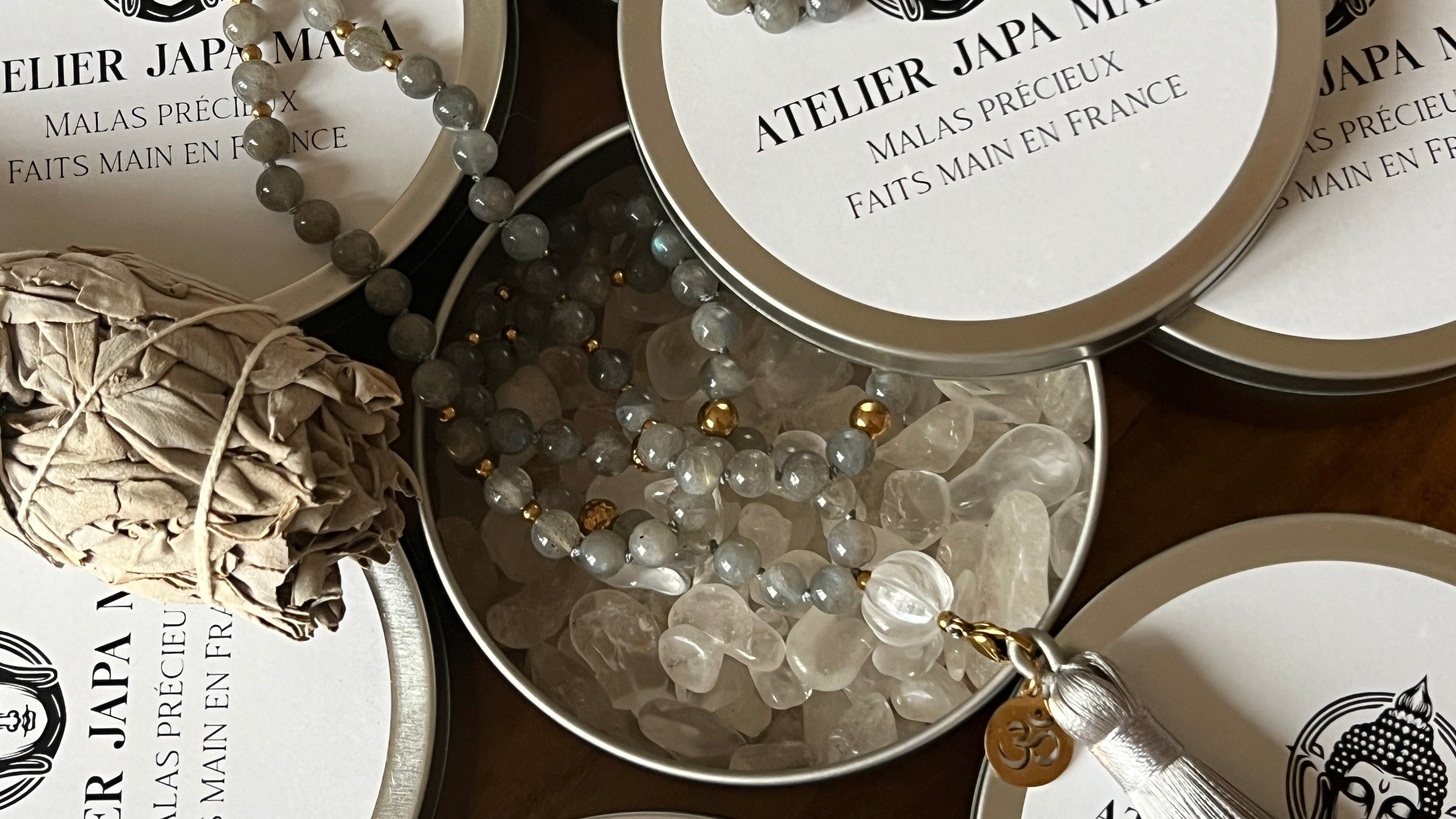 En janvier 2026, l’Atelier Japa Mala dévoilera sa première collection de malas précieux, noués à la main selon la tradition bouddhiste.