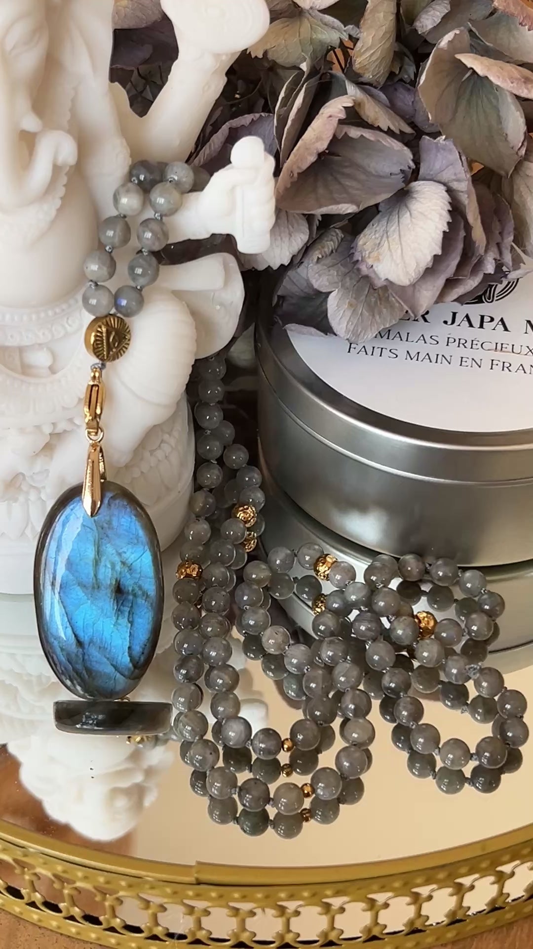 Mala en Labradorite selon la tradition bouddhiste